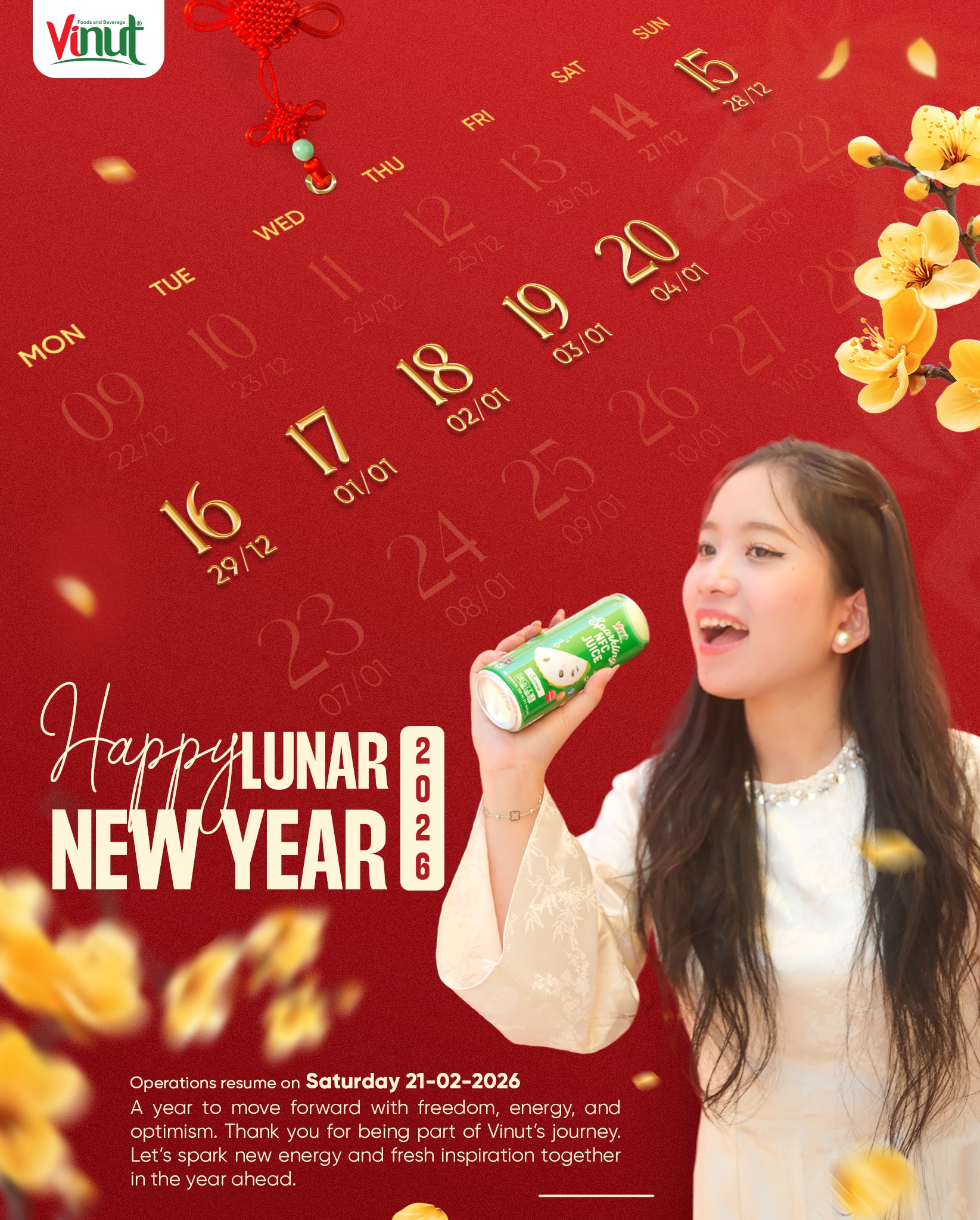 VINUT xin gửi lời cảm ơn chân thành đến tất cả Quý khách hàng, Đối tác đã luôn tin tưởng và đồng hành cùng chúng tôi trong năm qua. Để Quý khách hàng, Đối tác tiện sắp xếp, chúng tôi xin thông báo lịch nghỉ Tết Nguyên Đán như sau: